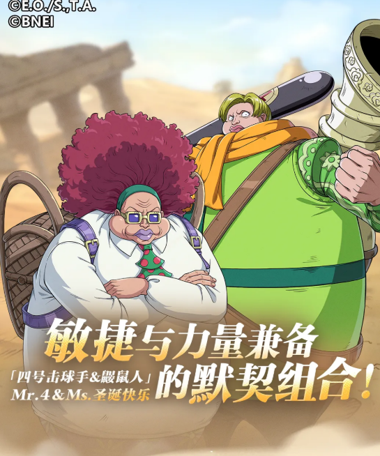 最后说说Mr.4和Ms.圣诞快乐这对组合。这个比较特殊,是两个人加一只狗一起上场的。他们也是勇气类型,擅长远距离攻击和走位。比较特别的是狗狗拉斯和Ms.圣诞快乐不会被打到,而且没有普通攻击键,取而代之的是一个摇杆来控制Ms.圣诞快乐,她会自动攻击靠近的敌人,攻击方式还挺多样的。