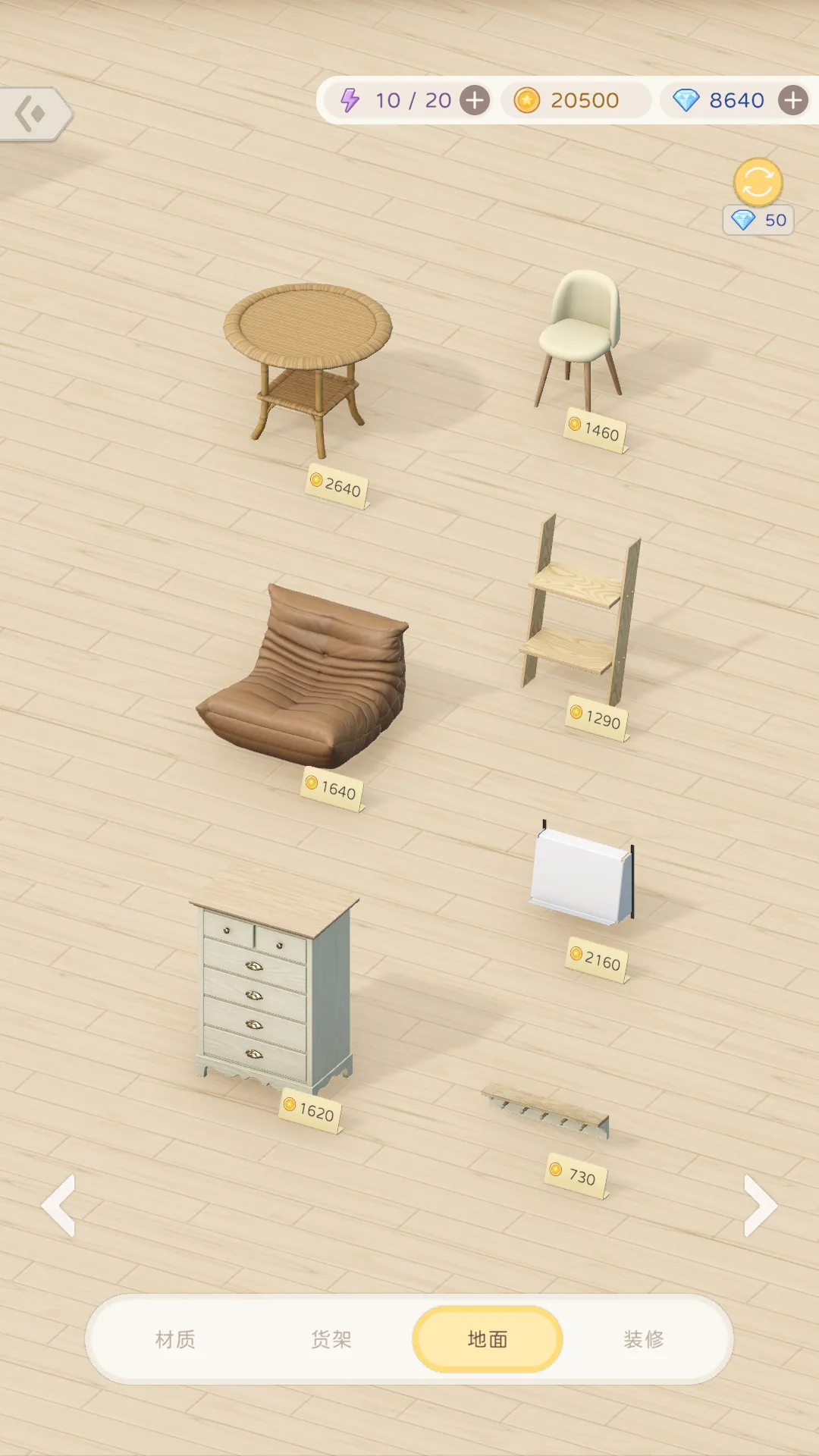 游戏具备高清真实的3D视觉细节与动态光影系统,光线会随着时间自然流转,从晨曦的温柔到黄昏的浪漫,营造出真实的昼夜氛围,增强了沉浸感与治愈感,同时在创意布置中感受空间蜕变也能获得一定成就感。