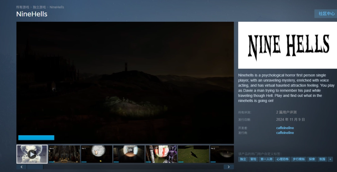 《NineHells》是一款第一人称心理恐怖游戏,采用线性叙事,融入神秘调查元素。玩家将扮演主角戴维,穿行于阴森诡异、充满象征意义的地狱各层,试图找回自己失去的记忆。