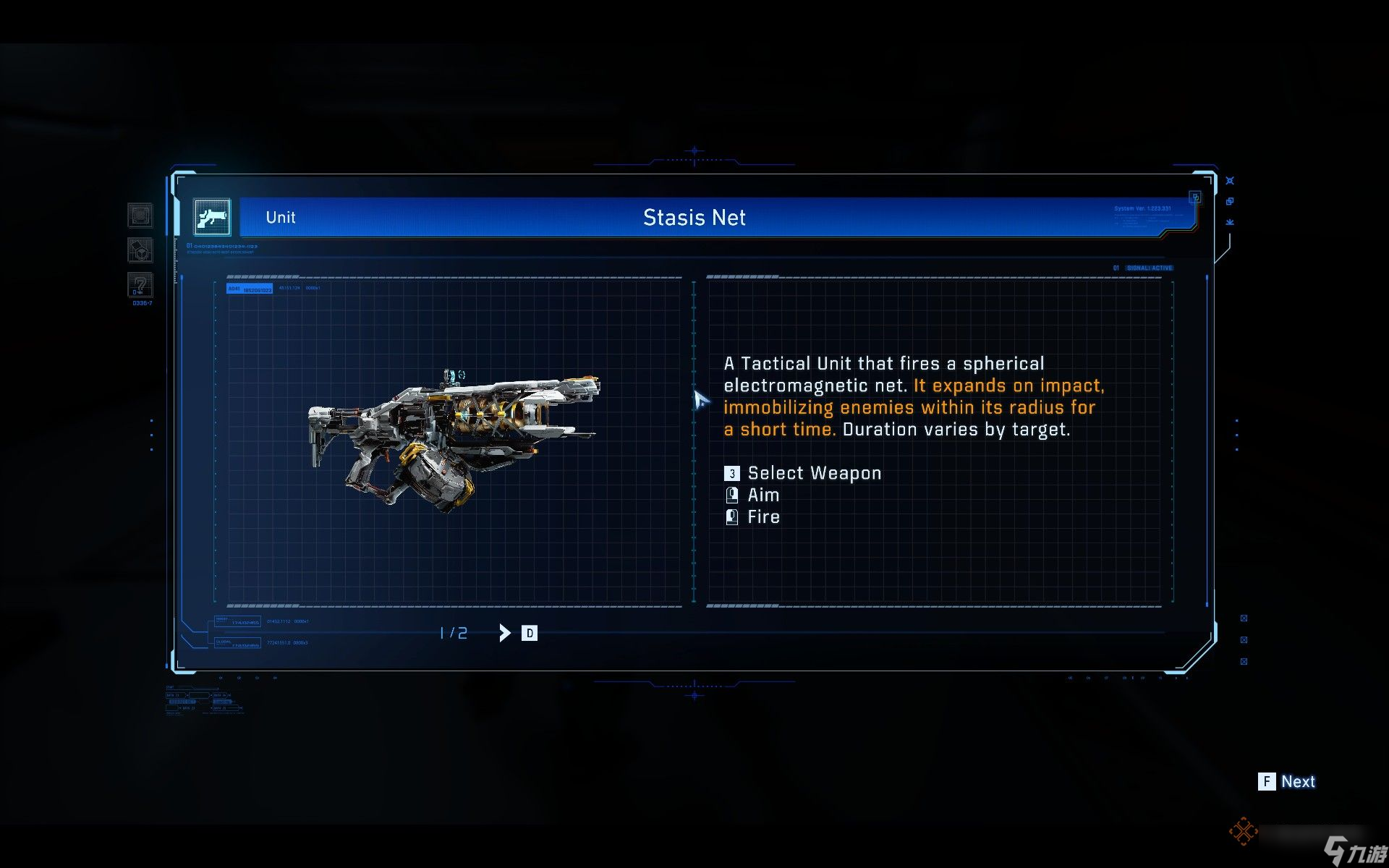 载入界面的第一部分专注于自定义休在前往下一区域前所携带的单元。你可以查看所有已解锁的物品进行对比。起初你只能携带每种类型的一个单元,但随着主线剧情推进,后续升级将显著扩展你的武器储备。