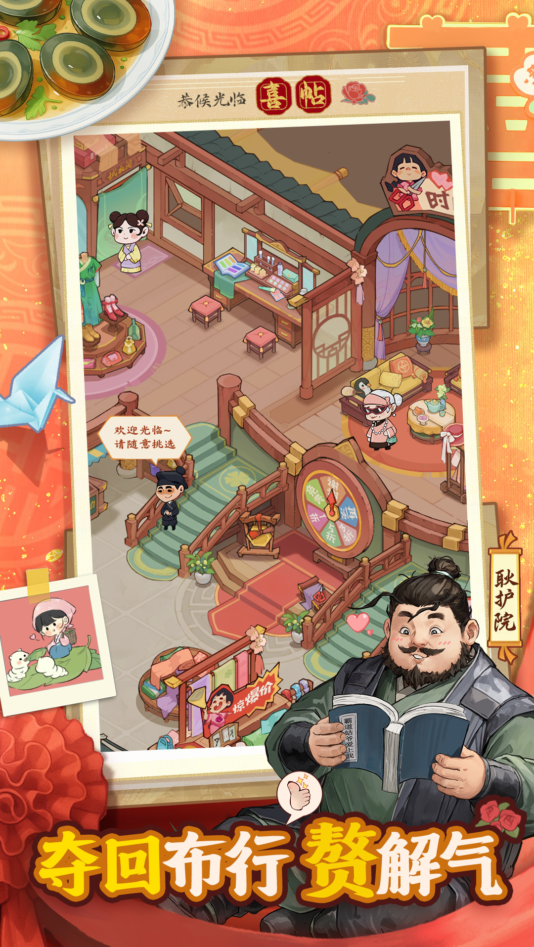 门客系统构成战略支撑核心,支持招募原著角色并依属性差异化培养:智力型门客显著提升店铺营收转化率,武力型门客承担安防护卫职能,谋士型门客则优化商战决策精度。同步开放跨服商战竞技模块,玩家可参与全服资源竞拍、商铺争夺战等PVP玩法,并支持组建商会联盟,实现资源共享、协同作战与跨阵营对抗,强化社交深度与策略纵深。