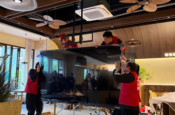 宿迁人气餐厅吊装百吋电视 打造球迷“第二现场”