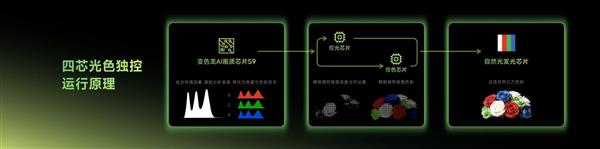 支撑三大模式的,是由创维「变色龙AI画质芯片S9」、控光芯片、控色芯片,以及WRGB背光芯片组成的「四芯光色独控」系统。它就像一个执行导演,「变色龙AI画质芯片S9」会先根据画面需求和环境因素,输出亮度与色彩信号,再分别交给控光和控色芯片分别控制亮度和色彩,最终WRGB背光芯片负责还原自然界的亿万种色彩。