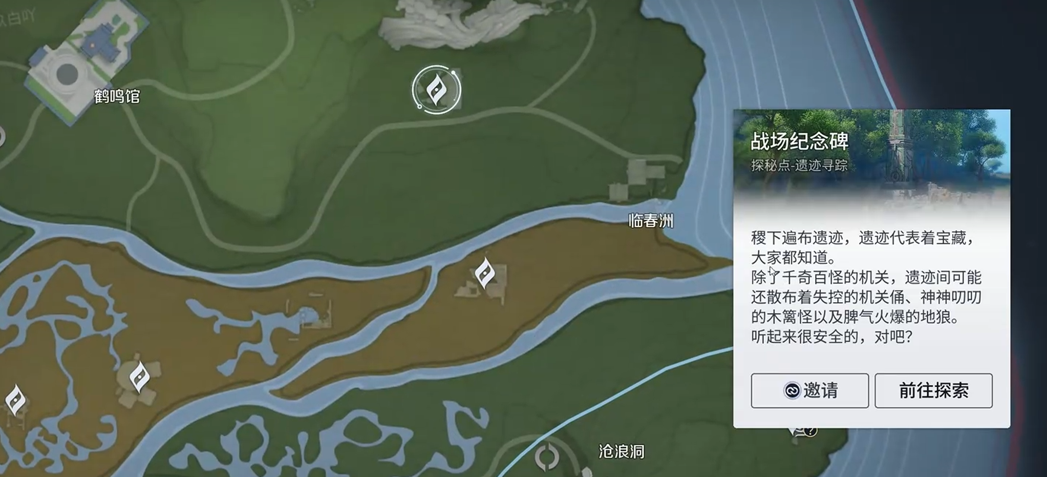 想要开始这个任务,首先得去溯洄营地找一个叫白露的NPC。跟她对话就能接到任务了,这一步倒是挺简单的。接下来就要去沧浪洞看壁画,壁画上会显示需要收集五个盔甲碎片。这五个碎片分散在不同的地方,每个都有特定的获取方法。