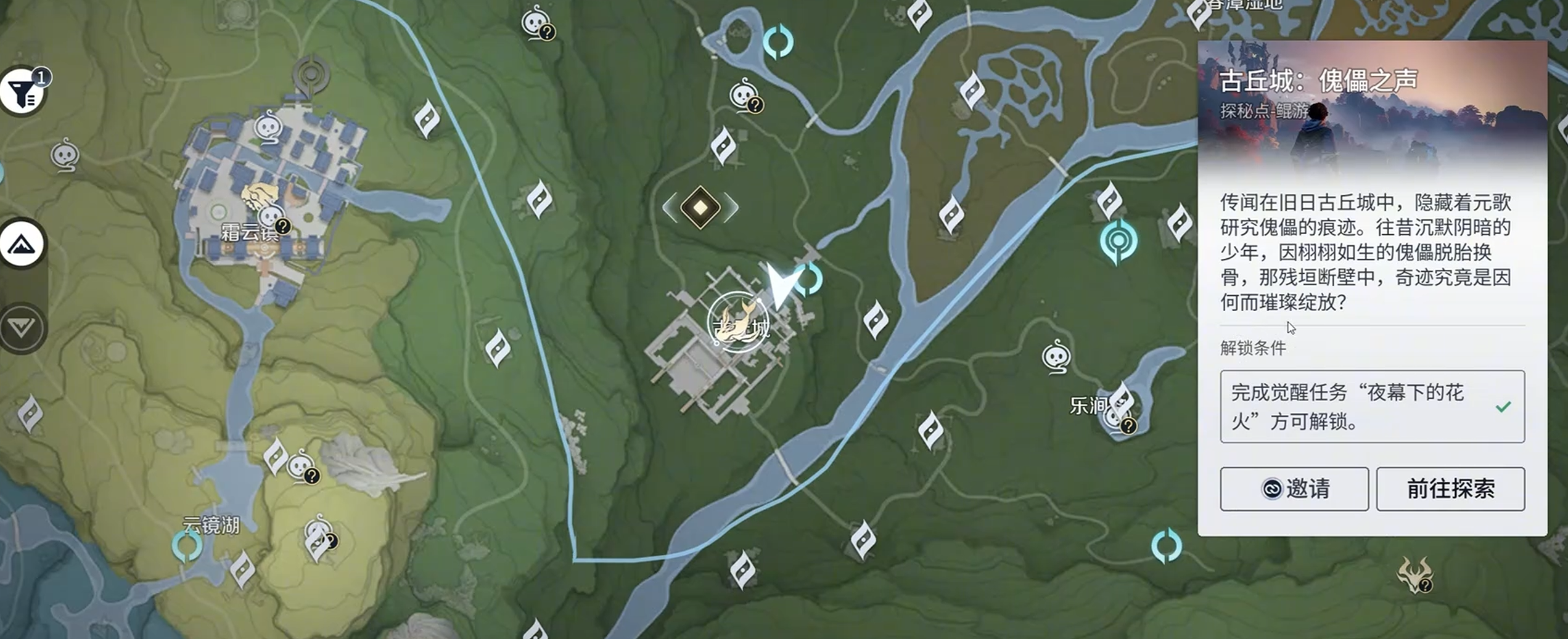 最后一个青铜剑碎片比较特殊,需要先完成古丘城里面的”鲲游:傀儡之声“任务。这个任务本身也有一定难度,建议提前做好准备。