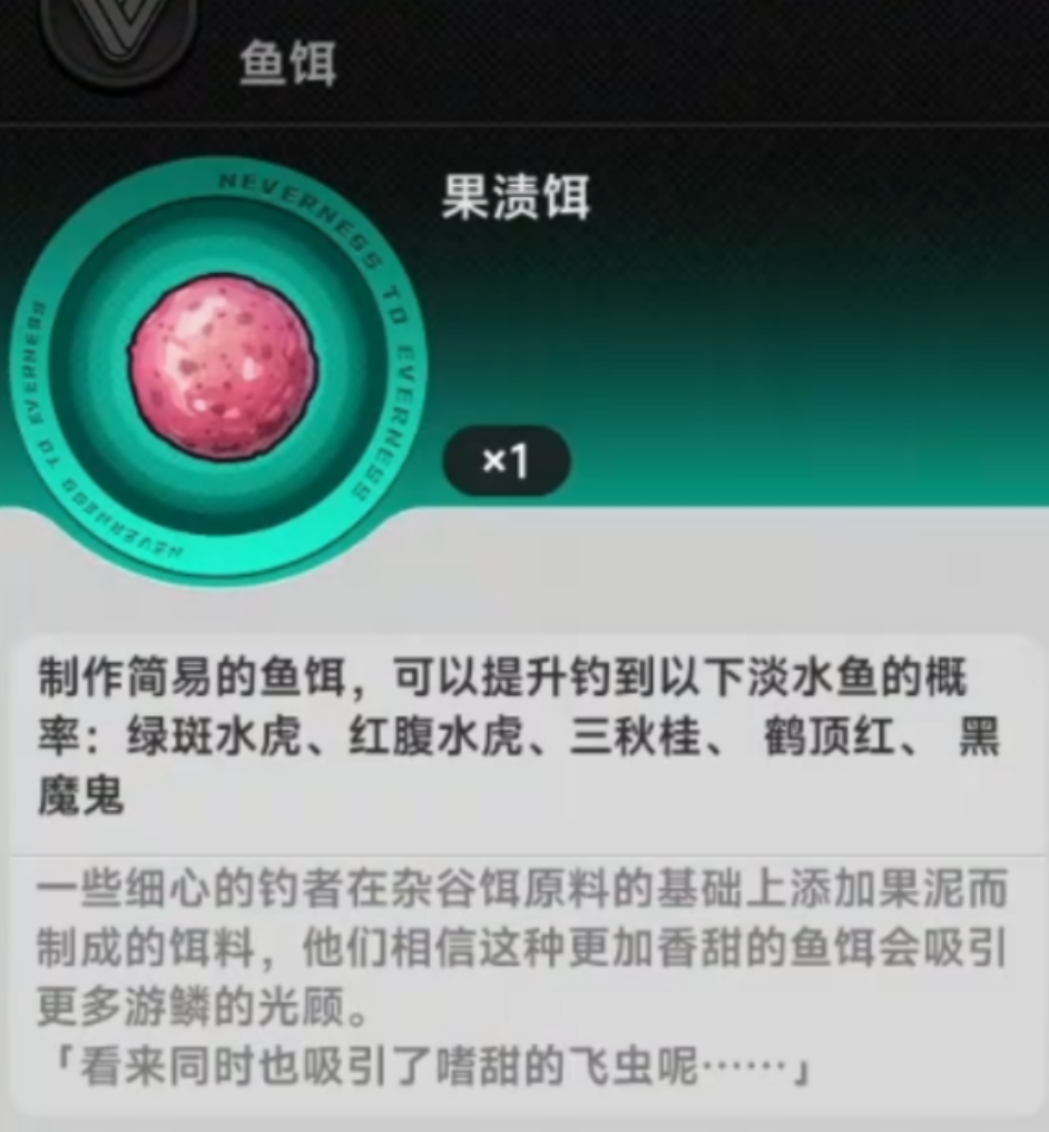 高阶阶段(钓鱼技能等级6及以上):必须启用【果渍发酵饵】。该配方核心成分为经72小时恒温泥窖发酵的野山果浆,释放的挥发性有机物可精准模拟稀有鱼种的天然信息素信号。实测验证其对绿斑水虎(出现概率+185%)、红腹水虎(咬钩速度缩短4.3秒)、三秋桂(图鉴解锁成功率92.7%)、鹤顶红(稀有度S级鱼种)具备强靶向吸引效果。使用时需注意水域盐度阈值——仅适用于pH值6.8-7.2的微咸水交汇区及深层溶洞暗流带。