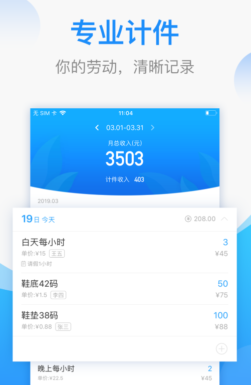 面向外包、手工制作、内容创作、快递配送等典型计件岗位人群开发,支持按单、按件、按时长等多种计薪方式灵活设置。每完成一项任务即可快速登记工作量与对应报酬,系统自动累加当日/当月收益,支持导出明细报表,杜绝漏记、错记、重复记等问题,让收入核算真正实现“所做即所得、所记即所见”。