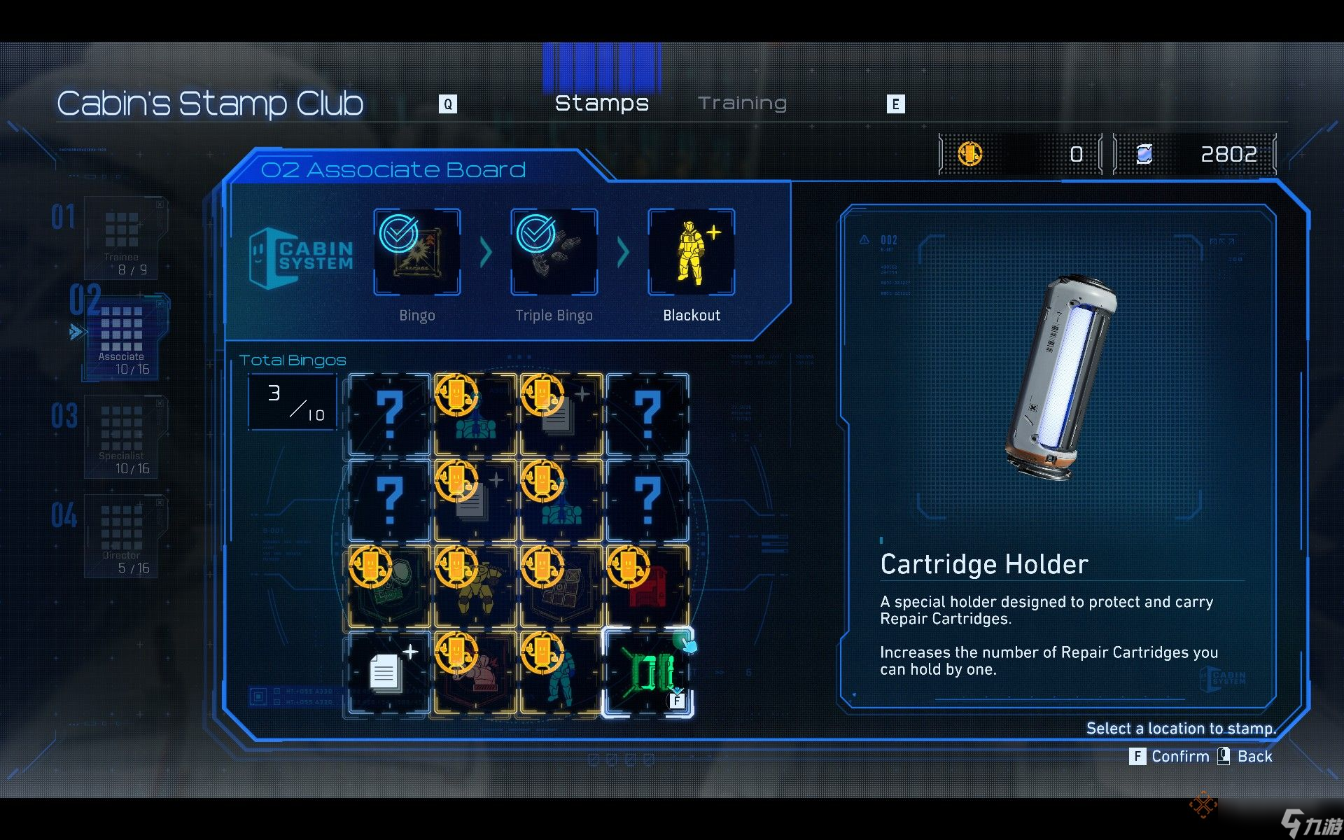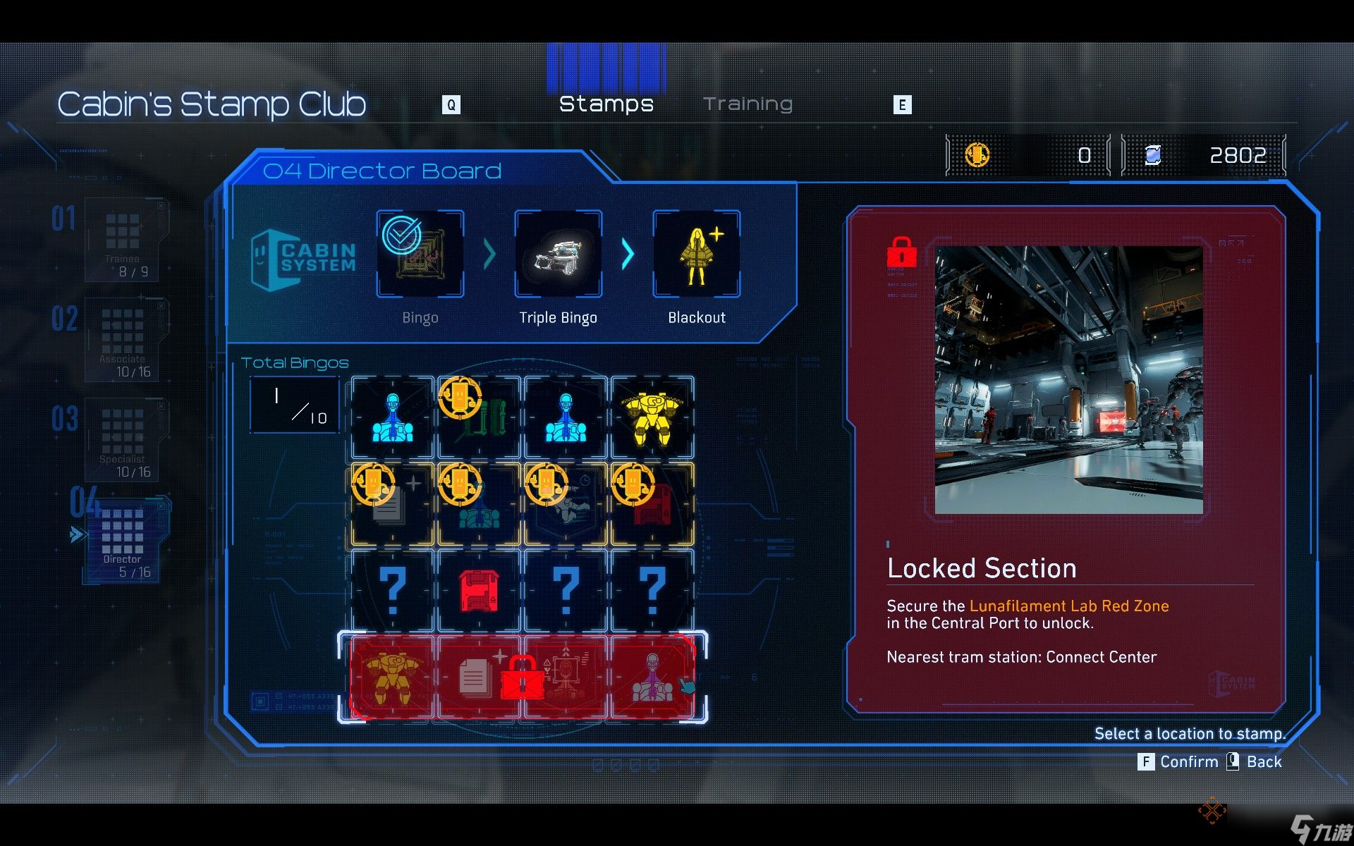 在 Cabin 邮票俱乐部的某些宾果面板上,存在锁定区域。在完成该面板信息界面所指定的“红区”挑战之前,你无法选择该行的任何宾果格子。一旦清除了对应的红区挑战,你就可以正常在《Pragmata》中完成这些宾果连线了。