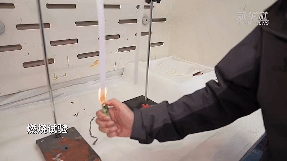 普通纸(左)vs芳纶纸(右)燃烧实验,普通纸一下子就烧成灰了,芳纶纸不受影响。