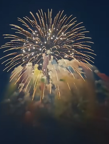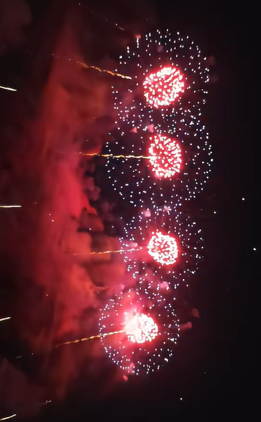 绚烂烟花升空绽放时,张雪拿出手机拍摄记录,还与身边人分享自拍画面;看到精彩之处,更是兴奋鼓掌、吹口哨叫好,兴致十足。