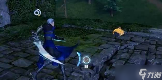 石碑碎片一共要收集三块,分散在附近几个地方。第一块在左侧建筑侧面的洞穴里,洞口有个标靶,打破标靶门就开了,进去拿就行。第二块在前方铁栅栏里面,这里要动点脑子,把蓝色石头牵引过去压住压力板,栅栏门才会打开。第三块最简单,直接在最上方的平台上,走上去拾取就好。三块碎片都拿到之后,回去把碎片安装拼接到石碑上,完成拓印,等NPC过来看完,再对话一次。