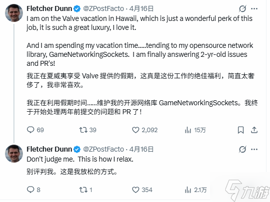 有意思的是,即便是在“豪华度假”中,Dunn也没完全放下工作。他透露自己利用空闲时间继续维护开源网络库GameNetworkingSockets,顺手修复了一些历史遗留问题。他还表示,正是在这种相对放松的环境里,反而更容易专注梳理代码。