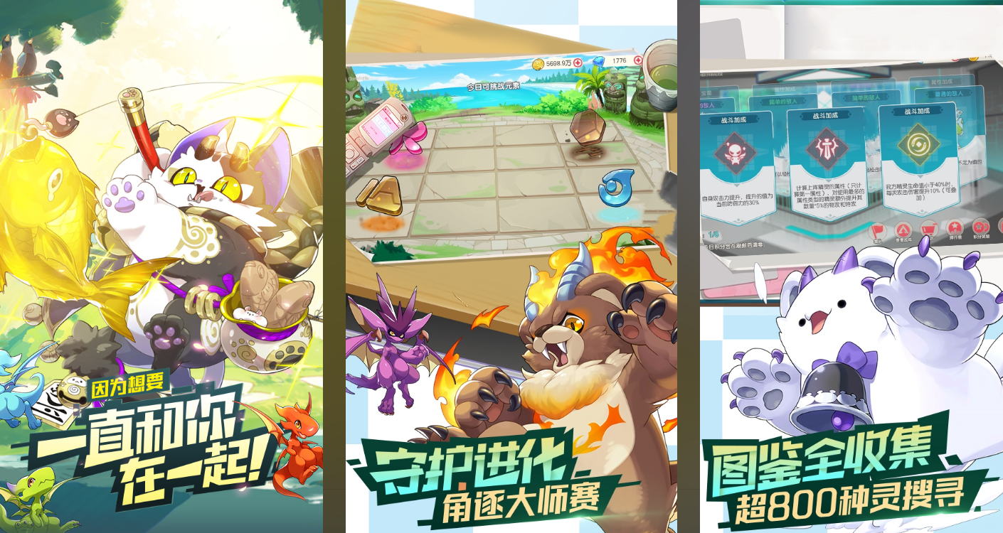 本作采用清新Q版美术风格重构宝可梦宇宙,主打深度回合制策略战斗与立体化养成体系。玩家通过挑战常规副本、深渊挑战及限时活动关卡获取经验与材料,推动宝可梦升级、进阶与形态突破。独创福袋抽卡系统支持多种抽取方式;亲密度系统则解锁专属语音、动态互动动作与隐藏剧情线,强化人宠情感联结,让每一次培养都更具温度。