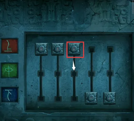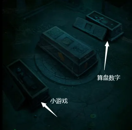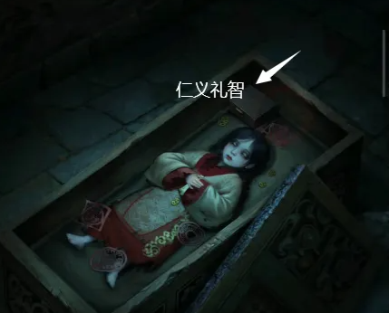 4、进入右边的墓室,第一个棺完成小游戏可打开,第三个棺根据之前算盘记载的数字把白点挪到45352的位置可打开,左上角有一个箱子,使用“仁义礼智”打开箱子,获得一把剪刀。