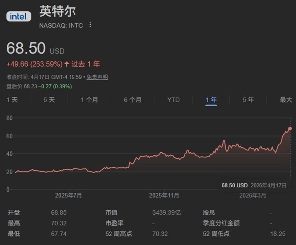 英特尔的股价自开年以来飙升88%,较去年同期上涨3倍多,远期市盈率更高达130倍,远高于互联网泡沫巅峰期的60倍。