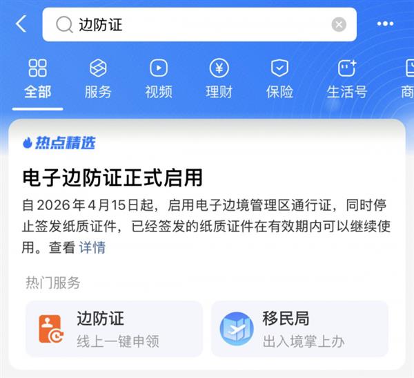 为进一步便利群众前往边境区域出行,自2026年4月15日起,电子边境管理区通行证正式启用,首批覆盖新疆、西藏地区,纸质边境管理区通行证同步停止签发,已签发的纸质证件在有效期内仍可正常使用。