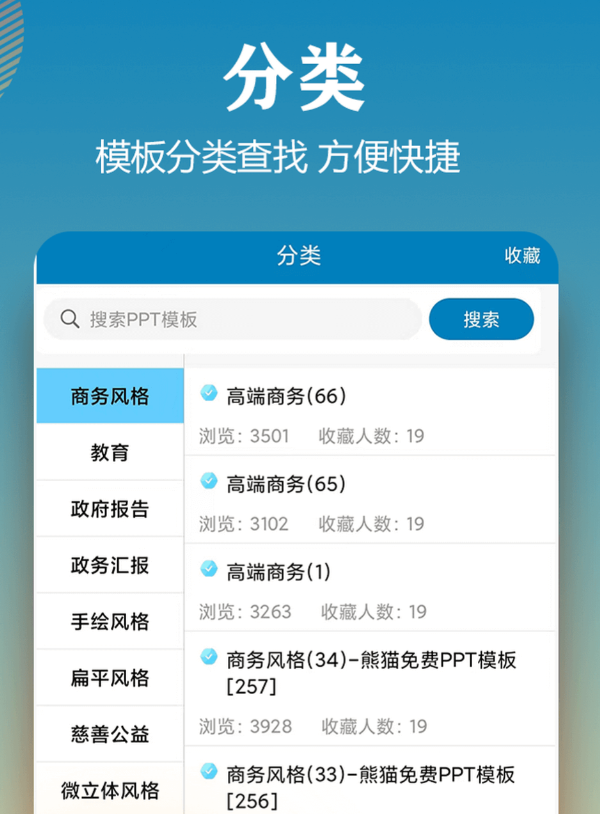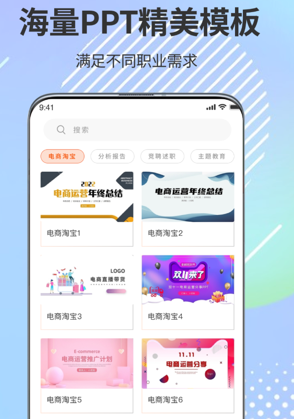 以海量模板储备为核心优势,风格分类细致明确,涵盖简约大气、经典商务、实用扁平、卡通可爱、中国风、科技感六大方向。检索方式兼顾风格与用途,支持按“工作汇报”“课件制作”“招聘展示”“节日庆典”等具体场景一键筛选。模板采用即用型设计,下载后仅需替换文字与配图即可直接使用,无需重新布局。全部资源免费提供,无隐形付费项,支持本地存储及跨设备同步至电脑端继续深度编辑。