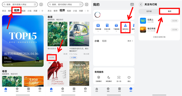 只需在“视界”频道找到感兴趣的专栏并点击“+订阅”,后续即可在“我的关注”中随时回看该专栏的全部历史内容。无论是刚上线的专栏《在路上》,还是一直持续为用户输送优质资讯的《5 FOR TODAY》《每日一画》《看点啥》《对焦》等精品栏目,订阅后皆可随时翻找回看、常看常新。不再错过优质内容。