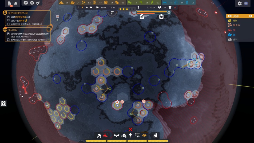 为满足不断增长的配额需求,玩家需要更迭科技,解锁更多新技术与能力,布局更高效的自动化路径,并时刻关注资源状态与物品价格、对手需求与目标变化,一步步扩张钻探版图。