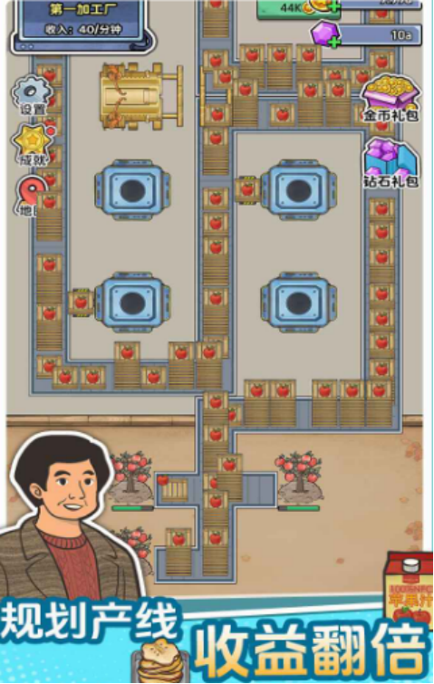 此外小伙伴们也要时刻关注各种资源,在离线的情况下依旧能够自动运转,登录之后再次上线,将之前统计好的金币全部收集,只要努力经营就能够解锁更多的全部工厂,有机会从最初的小工厂,打造成为超级出色的特色商业模式,让你的收益不断增加。
