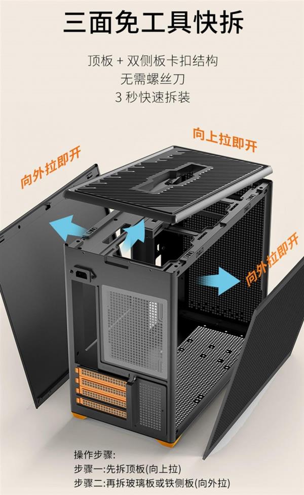 针对“防毛机箱”需定期清理的特性,P80防毛大师在维护体验上进行了大幅优化。机箱采用可拆卸防尘网设计,支持快速拆卸与水洗清洁。同时,整机采用三面免工具快拆结构,极大降低了日常维护门槛。