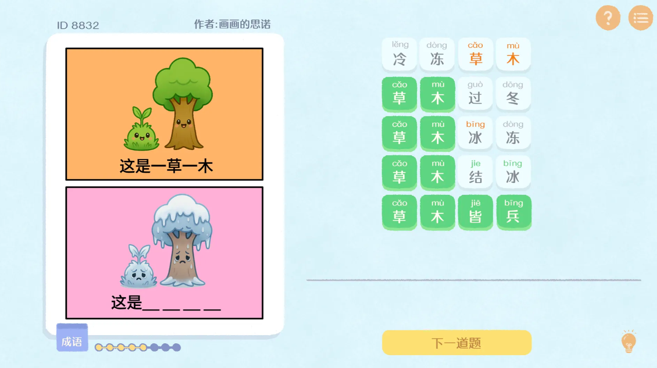 当前游戏仍处于测试阶段,参与内测的用户普遍反馈其呈现出一种“荒诞中见逻辑、冷峻里藏温度”的独特气质。这种风格源自大量原创谐音梗设计:每道关卡均以图像为引子,通过语音同音、字形联想或语义错位等方式,引导玩家拼合出标准四字成语。操作界面极简,无需教学即可上手;解题过程常令人抓耳挠腮,而揭晓答案那一刻——比如用“鸡飞蛋打”谐音演绎“机非但打”,又或借“马到成功”转译“码到成攻”——往往带来猝不及防的脑内震颤与会心一笑。这种短时高频的情绪释放,构成了极具辨识度的解压节奏。