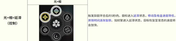 《异环》异能环合反应分为6种双属性基础环合(如光+相=延滞减速、光+灵=创生范围爆炸、灵+咒=覆纹单体追加伤害等)和2种三属性高阶环合(光+灵+相=盈蓄回能、咒+暗+魂=失谐破韧)。