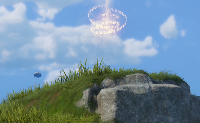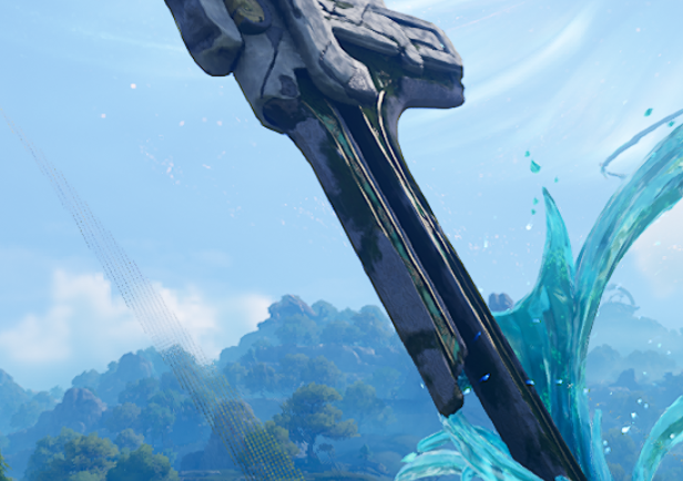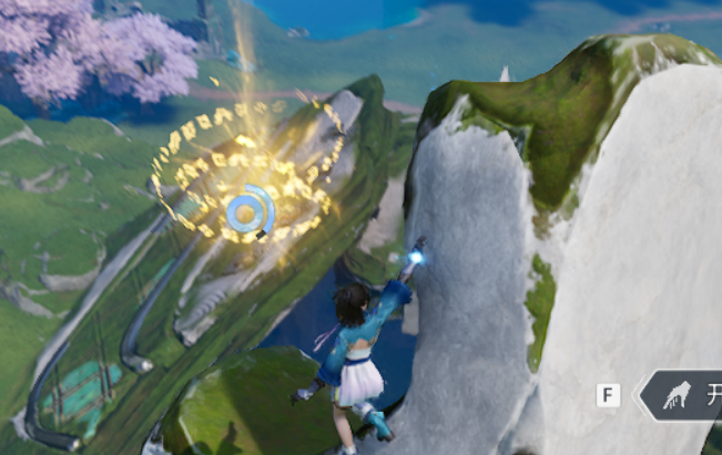 第三枚赋神令位于篱遁丘渡石,目标位置为巨木篱背部显眼的黄色闪光点,攀爬抵达后拾取。第四枚藏于两块相对而立的巨型岩石之间——先以锁钩登上其中一块,再借助钩索飞跃至另一侧,在空中靠近闪光标记完成收集。第五枚位于西云落高地渡石的峰顶平台,闪光点清晰可见于最高处山巅;第六枚在无名雕像渡石,静置于雕像手掌之上;第七枚则出现在春潭湿地渡石旁的蓝色立柱表面。