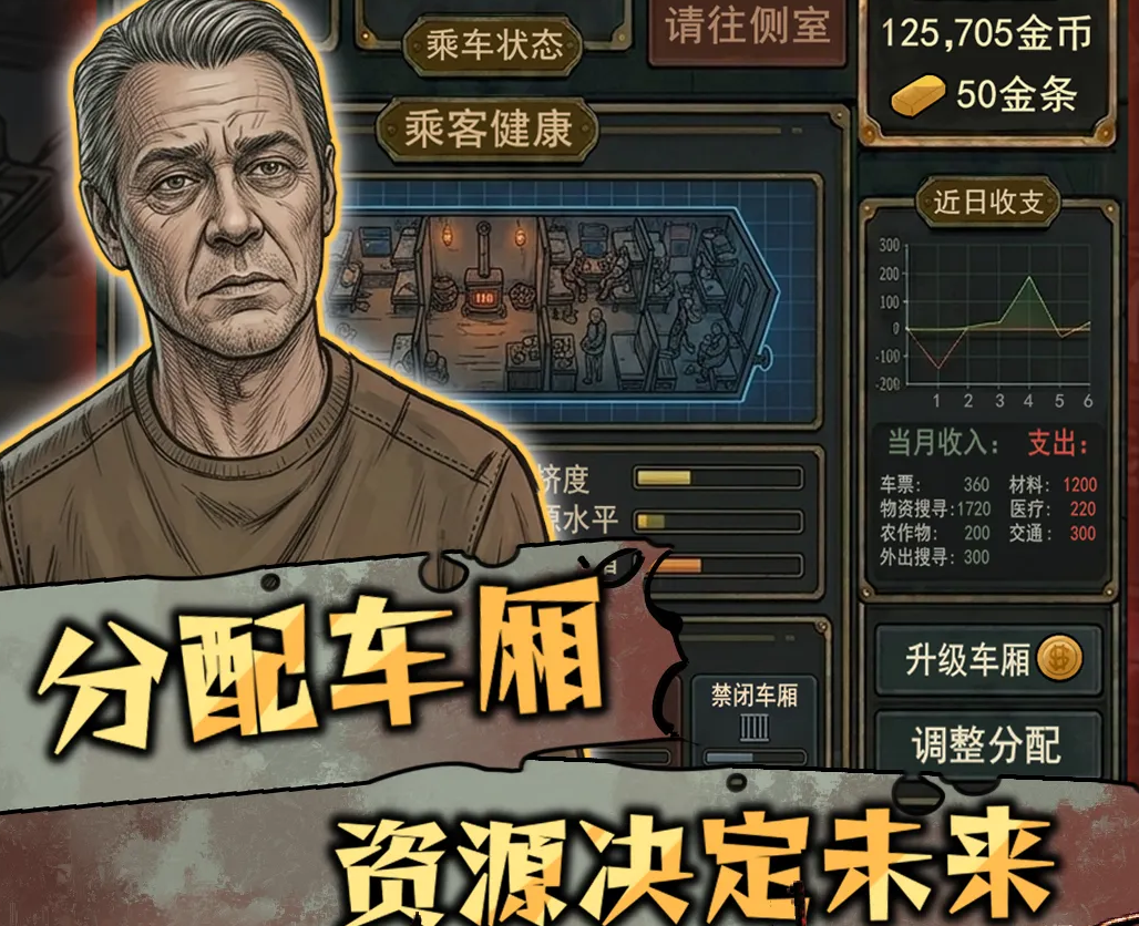 本作融合策略经营、资源管理与轻度叙事探索,强调系统性决策与长期规划。每位登车者都需经过多环节筛查,误放感染者将引发车厢疫情连锁反应;合理分配医疗、食物、净水等基础物资,才能维持列车持续运行。随着主线推进,玩家可解锁新型车厢(如医疗舱、育婴室、武器工坊),并逐步扩展列车长度与功能分区,实现从单节车厢到百米长龙的跃迁式成长。