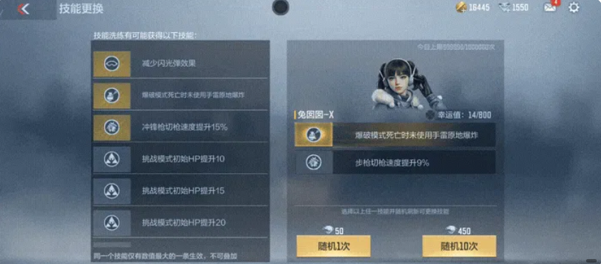 角色进阶路径清晰:消耗觉醒石可激活“兔囡囡-X”形态,解锁技能洗练功能。通过洗练可获取“减少闪光爆弹效果”等关键属性,使其成长为兼具防闪、防摔、防雷三重防护能力的战术核心,适用于残局收割、火力补充及心理压制等多种实战场景,综合实用性表现突出。