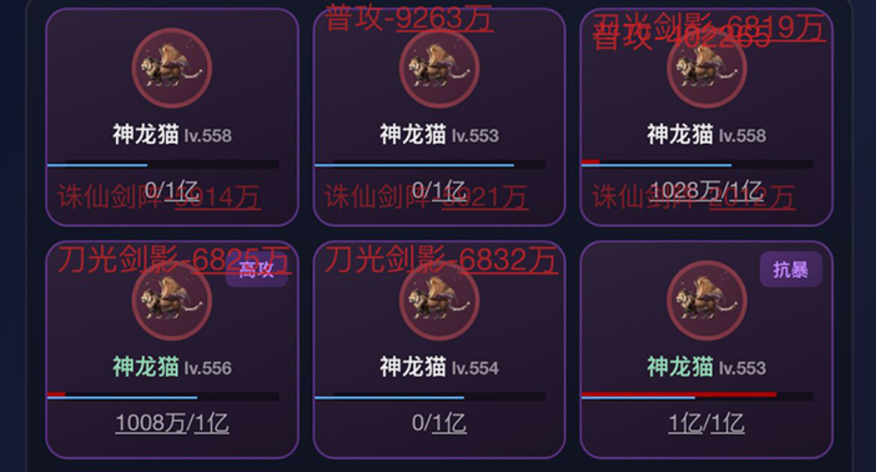 自动刷怪、一键秒杀、3×3怪物网格同时战斗设计,让玩家获得连击、爆发的效果。特效设计给战斗带来很大的刺激性以及成就感、满足感,但是却给玩家造成了巨大的伤害。玩家可以在线下休息的时候进行离线挂机来获取资源和经验,在有空的时候再去战斗,体验瞬间爆发的感觉。