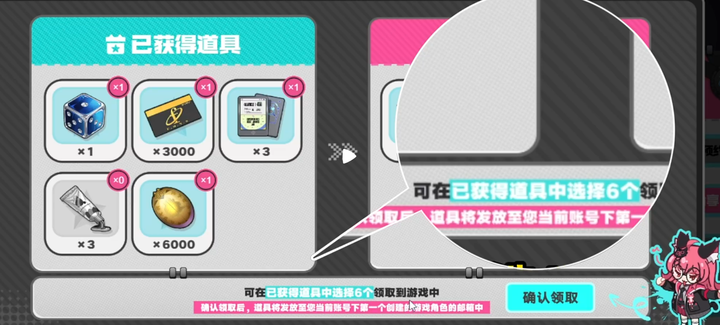 先说【捏造骰子】,这个是所有道具里面最重要的一个,没有之一。它是常驻卡池的抽卡资源,用来抽常驻角色的。游戏里想靠正常途径拿角色并不容易,开服那段时间更是资源紧张。多一张抽卡机会,就多一次可能抽到S级常驻角色的机会,这直接影响到前期组队的阵容强度。这种资源开服初期是真的很稀缺,不拿就是白白浪费了,这个必须选。