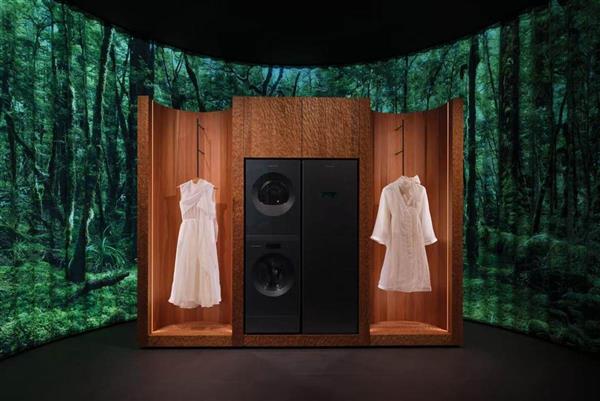 悦己洗护场景带来衣物的奢护体验。首次展出的极简风格衣物护理柜,集焕新、烘干、除臭、消毒于一体,让羊绒、真丝等娇贵面料在家就能得到专业呵护。搭配洗衣机与干衣机,从洗涤到护理一气呵成,覆盖高端衣物的全流程。