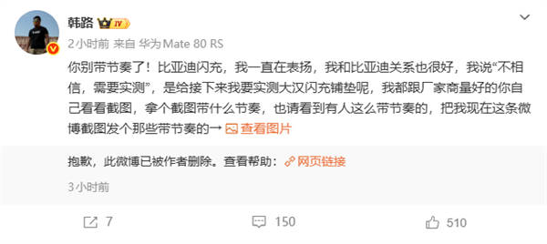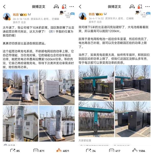 4月22日消息,近期有人质疑车评人韩路“踩一捧一”,一边质疑比亚迪的闪充技术,一边吹捧宁德时代,韩路直接晒出多张图片回应,让其别乱带节奏。