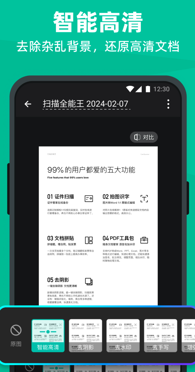 采用自适应图像矫正算法,手机拍摄纸质材料后自动完成边缘裁切、背景虚化与阴影抑制,输出高对比度电子文档。OCR文字识别引擎覆盖41种语言,支持图片内文本一键提取,结果可复制、编辑,并导出为标准Word或纯文本格式。PDF处理功能涵盖合并拆分、体积压缩、手写批注、区域涂抹、电子签名添加及智能水印嵌入。输出格式灵活适配多种办公场景,包括JPEG、PDF、Word、Excel及PPT五种常用类型。