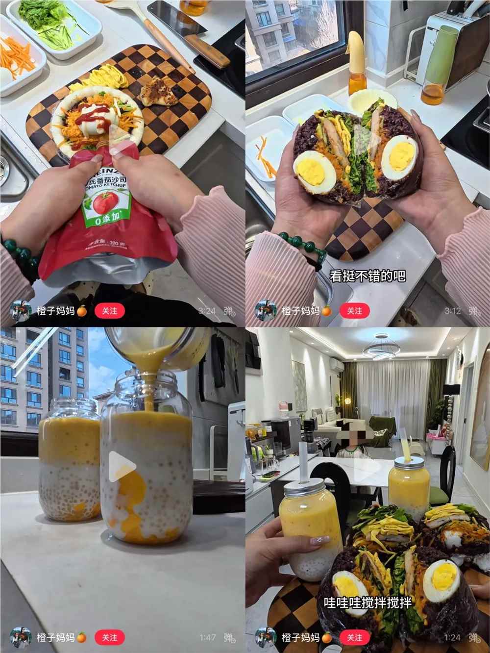 看到这里不难发现,这些陪读vlog大多沿用着相似的日常流程,如果多看两期,几乎都能记住她们家卧室到餐厅再到客厅的动线。整体节奏舒缓,不靠情绪冲突抓眼球,也没有展示妈妈们高超的厨艺,很多食材都是来自商超的半成品。