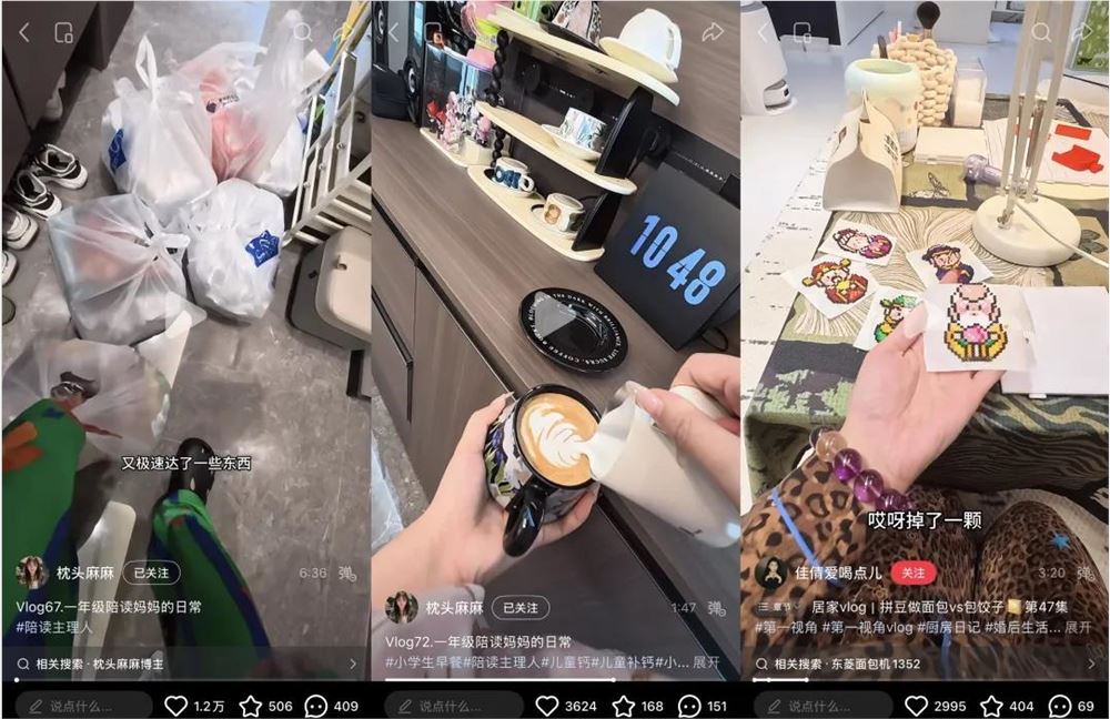 前者是正读大学或刚进入职场的年轻女性,后者则多是正身处同样育儿阶段的同龄妈妈,但无一例外地,她们都在vlog看到了居家生活的一种可能。那些厨房好物、家居小摆件、懒人电器,都成为了她们“求同款”的目标。