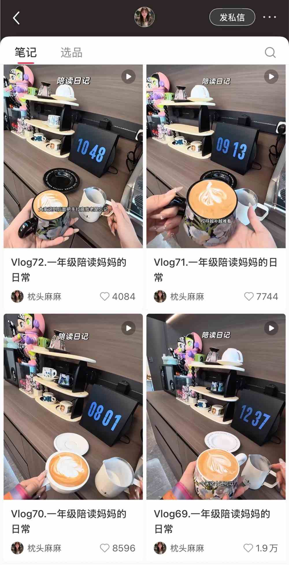 她们大多是30岁+的年轻妈妈,有个上小学的儿子或女儿,主打以第一视角记录陪读的日常vlog。