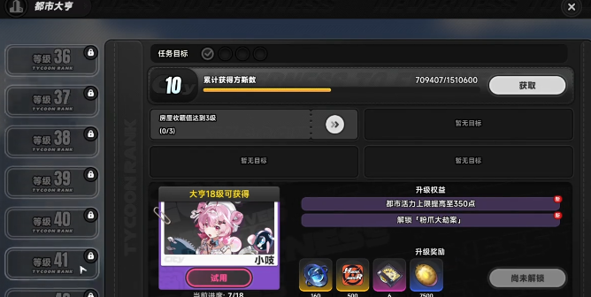 都市大亨共设45级成长体系,是获取版本核心奖励的唯一路径。每提升一级,均可获得方斯、经验及阶段性道具;升至满级后,将解锁专属版本限定武器、全阶段小吱以及维纳公寓购买权限。该设计对零氪及微氪玩家极为友好——无需高额投入即可达成关键养成节点。等级提升同步开放更多休闲子玩法,并逐步提高活力值上限;每周一0点,活动值自动回满,全程不消耗任何恢复类道具。