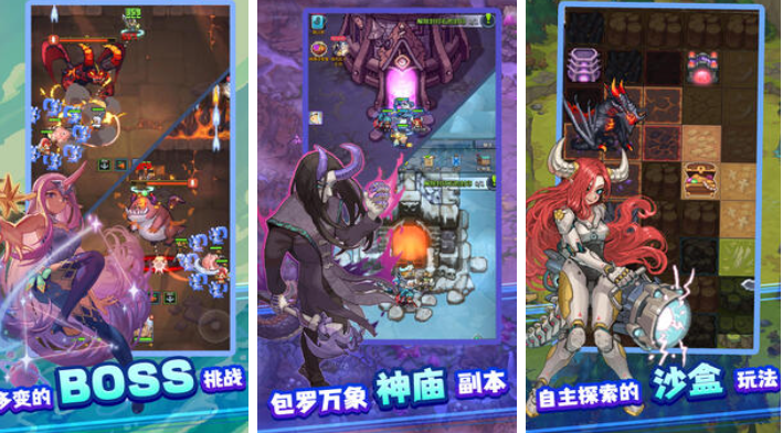 采用复古像素美术风格,核心玩法为自动战斗+策略布阵的放置类设计。地图采用神庙探索结构,含多层级BOSS关卡,配合粒子化打击反馈提升操作沉浸感。游戏引入沙盒式自由交互机制,允许玩家在场景中触发隐藏事件、调整地形布局以影响战局走向。PVE联机副本支持跨服匹配,适配碎片化时间体验。