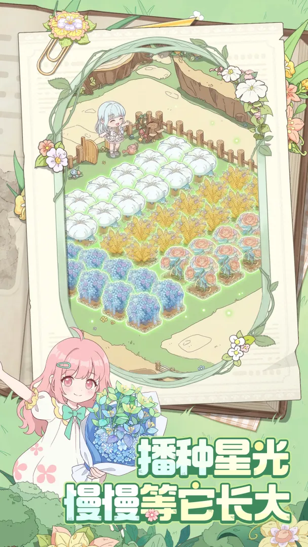 在游戏中,玩家将担任童话小岛的主人,每日照料各类特色花卉——雪织花、芊芊花、蓝天星等。这些植物造型柔软圆润,种子破土而出的过程轻盈灵动,仿佛一场温柔梦境,视觉与情绪双重疗愈效果显著。