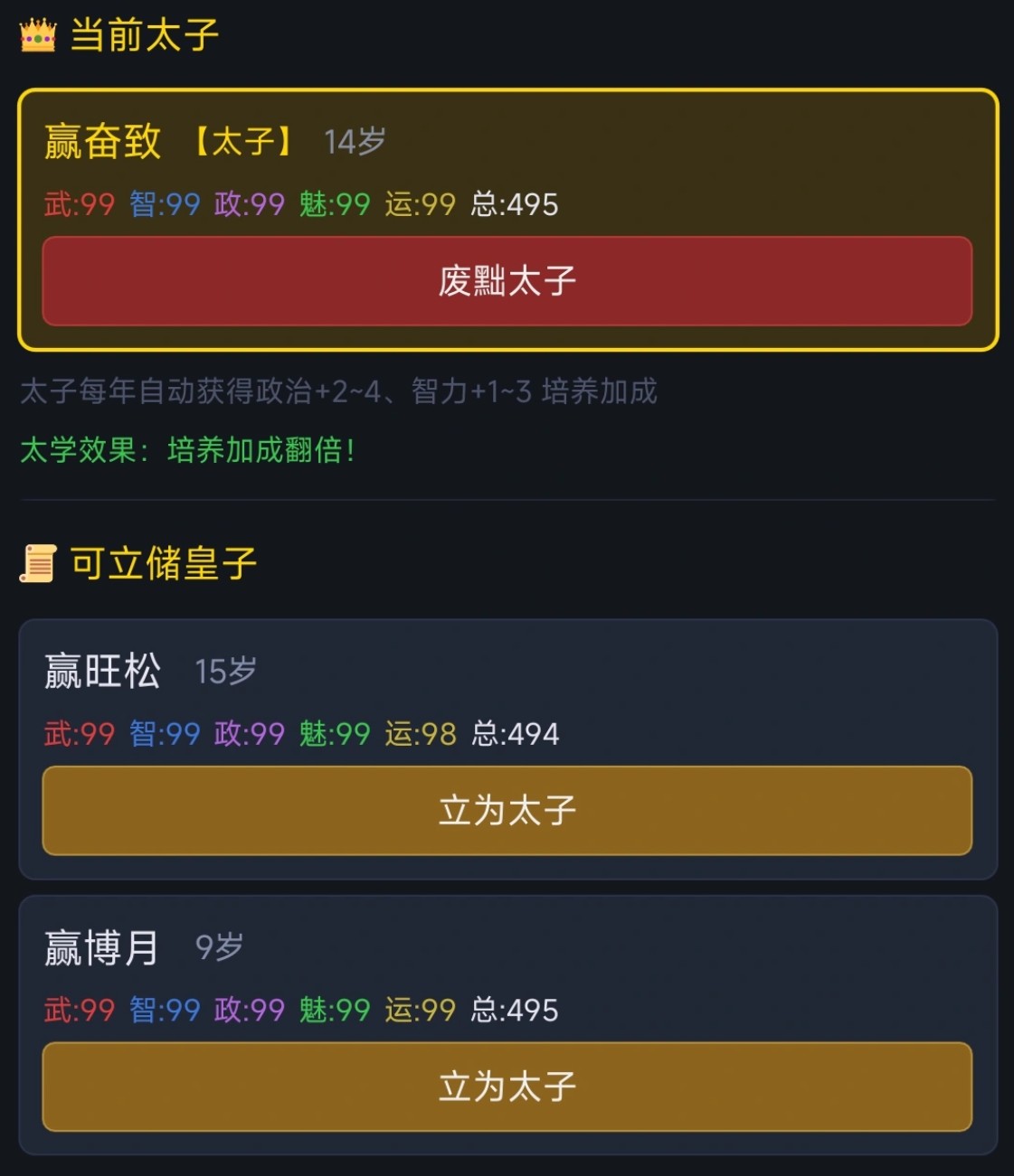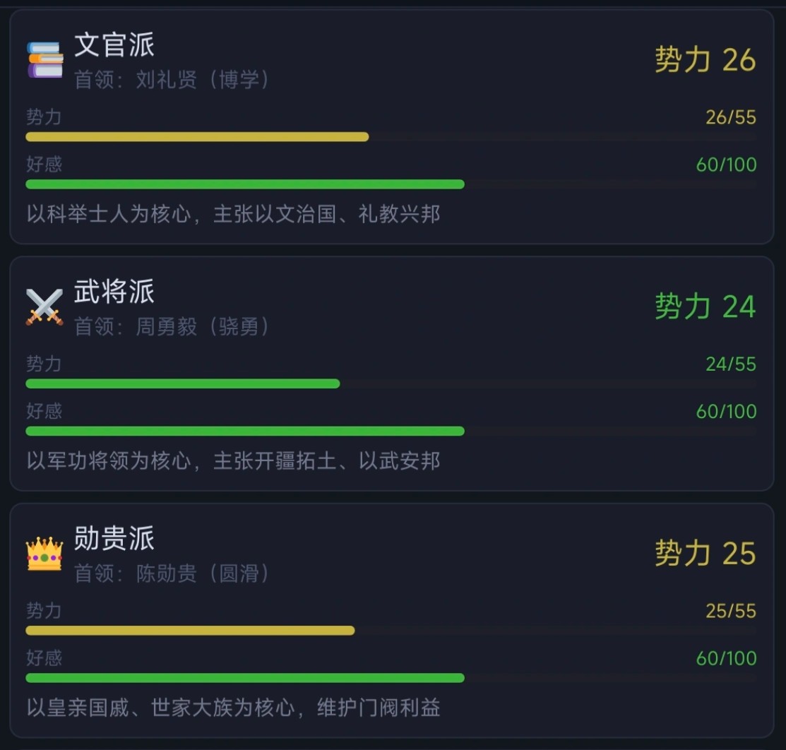 终极目标并非一蹴而就,而是引导玩家见证家族从白手起家到位列朝班、乃至问鼎天下、开基建制的历史性跨越。这一过程强调时间沉淀与代际协作,每一代人的抉择与积累,都将成为后世崛起的基石。玩家可直观感受家族谱系的延展、宅邸规模的扩建、族学藏书的丰盈、以及朝堂官职的跃升,获得强烈的成就反馈与文化代入感。