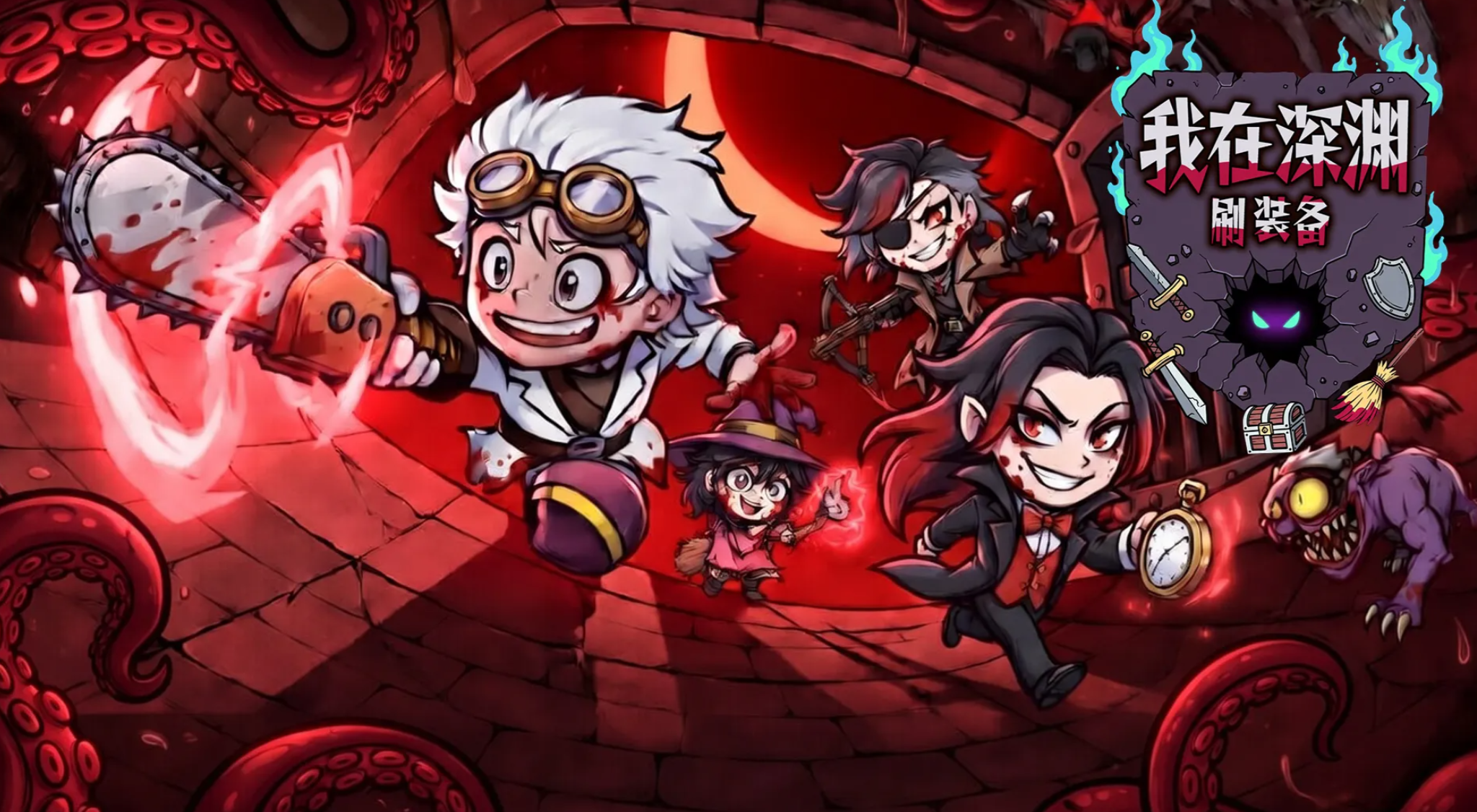 本作以“暗黑美学×萌系角色”为视觉主线,构建出极具辨识度的艺术风格。玩家将指挥鬼新娘、小女巫、疯医生等外形软萌但战力暴烈的角色阵容,深入程序化生成的深渊地牢与幽寂森林,展开多周目循环冒险。