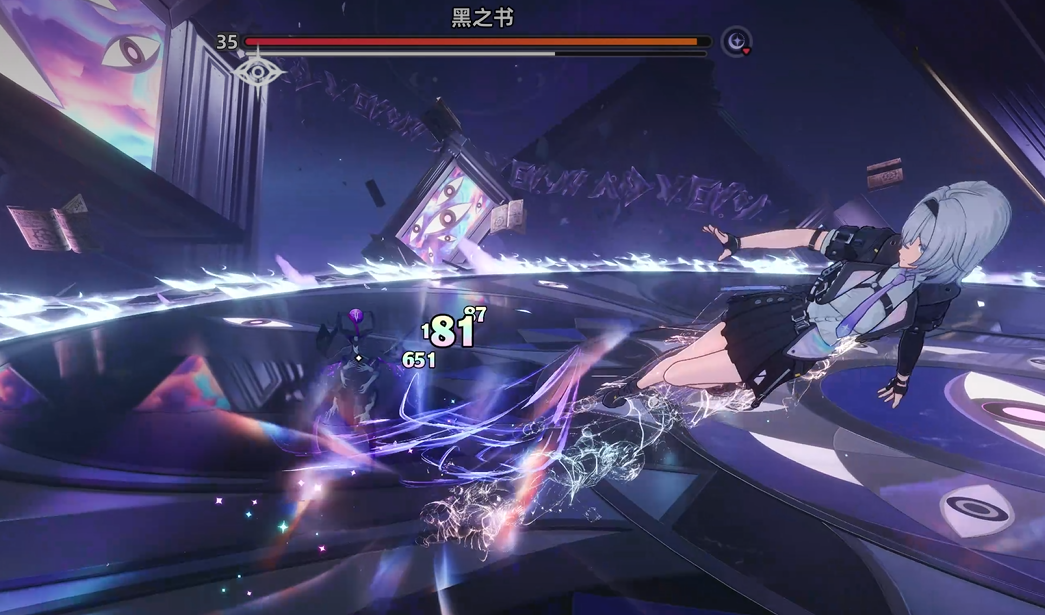 到了第二阶段,黑之书会切换成近战模式,整个打法节奏就不一样了。它近战攻击后也有短暂的后摇,这段时间同样是输出机会。高爆发的角色在这个阶段用起来很舒服,趁后摇打完一套再撤,循环下来掉血其实很稳。