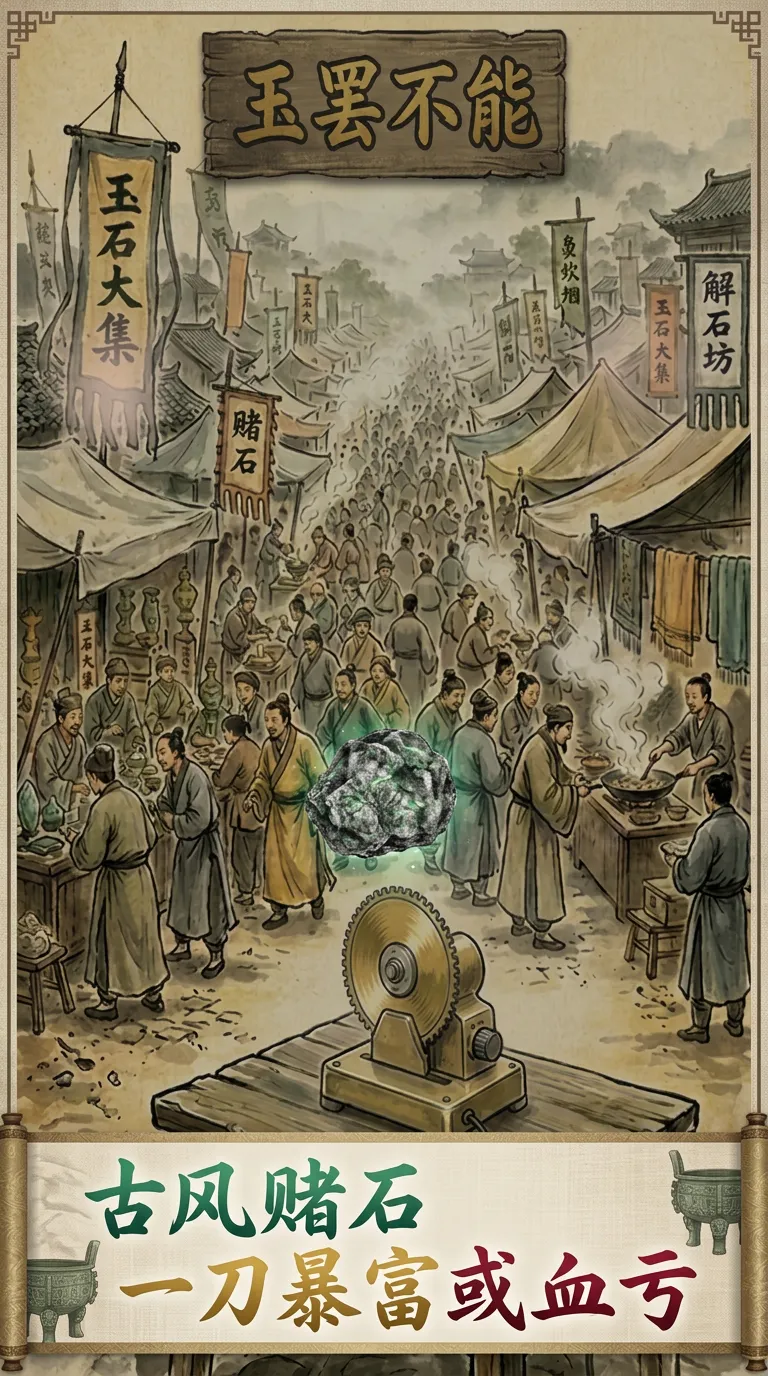 游戏初期,角色属性成长较缓,建议从基础原石切入,逐步积累经验与资金。随着品鉴能力提升和资源储备增强,可解锁更高品质的毛料挑战。每一块原石的切开过程均需结合纹理、皮壳、松花等细节判断,精准识别将大幅提升高价值玉石(如翡翠、和田玉籽料)的出货概率。