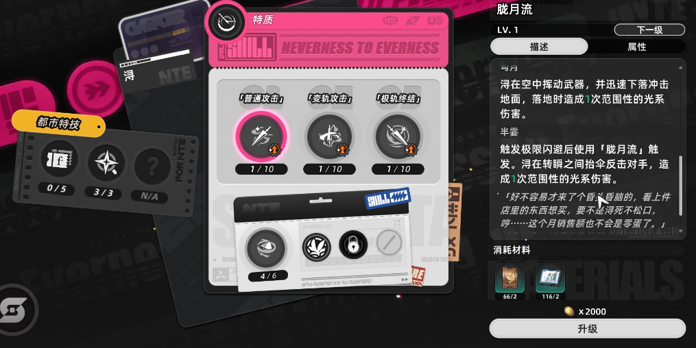 另一核心技能为【变轨攻击】,属于高阶协同输出手段。该技能通过记录自身与队友的协同动作次数及变轨层数,在回拨至满层时一次性释放全部累积伤害。其单次倍率极高,且释放瞬间额外触发六段光属性范围伤害,对多目标敌人具备极强压制力,在群怪清理、BOSS战AOE补刀等场景中效果突出。该技能同样建议升至满级,以确保爆发连贯性与伤害阈值达标。