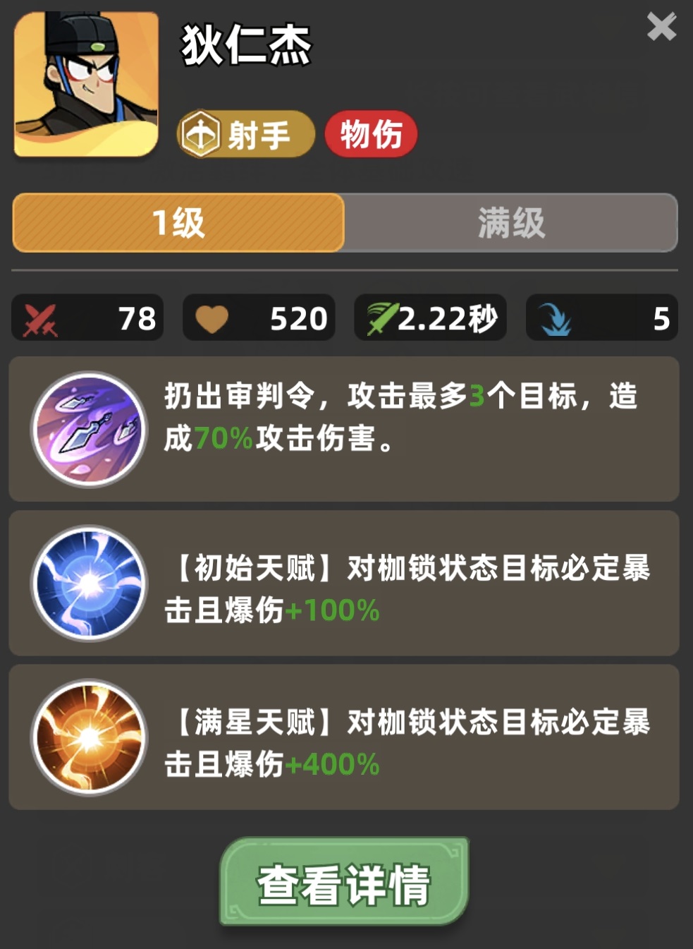 该阵容还具备双重增益联动:其一,集齐五名射手可激活专属羁绊,提供可观的基础攻速加成,进一步放大全体射手的出手频率;其二,展昭的普攻附带“枷锁”状态,而狄仁杰对处于枷锁状态的目标必定暴击,由此形成稳定的控制—爆发闭环。整套配置兼顾持续输出与瞬时爆发,在缺乏后羿的对局中可作为高效替代方案。