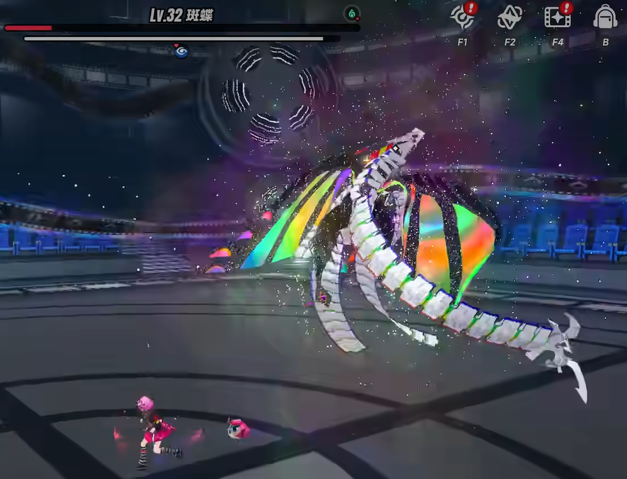 血量掉到40%以后,就进第二段了。斑蝶这时候开始乱跑,而且会钻进水里或者往上飞,突然从视野里消失。这时候不要慌,注意观察水面,水面如果出现波纹,说明它马上要从下面冲出来发动范围攻击,要提前摁闪避或者向后走开。队里如果有治疗角色,这个阶段可以把治疗多带一下,避免减员影响后面的输出。