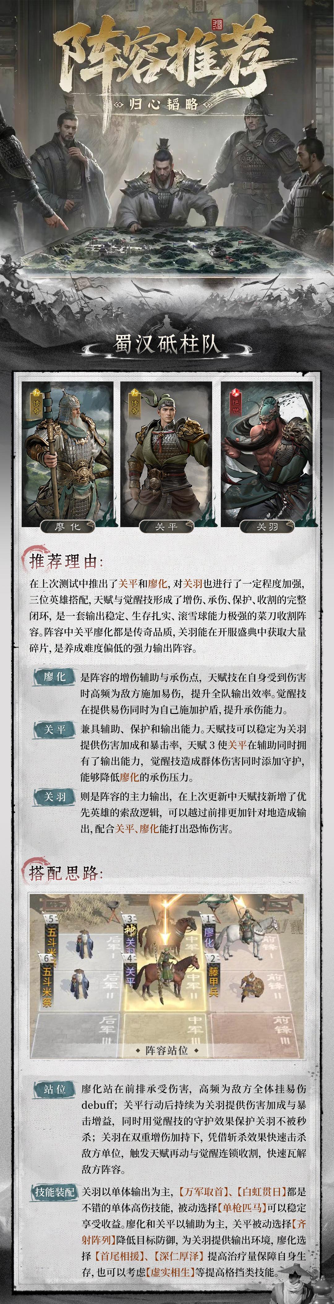 前两期的阵容推荐均以之前版本中出现过的老英雄为主,本期将围绕公测版本的新英雄,为各位主公推荐三套阵容,希望能为大家的配队打开新的思路。