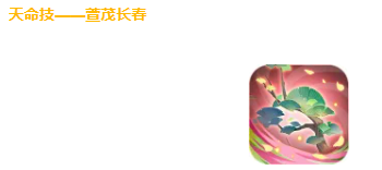 天命技”萱茂长春“,不需要在自己的出手回合,才能释放,只要天命值积累到100点就可以触发。这个技能,对敌方全体造成630%法术伤害加126%湮灭伤害,同时给我方全体附上万灵状态,给敌方全体附上桑田状态,如果敌方已经有桑田状态,还会额外叠加沧海状态。自身则会获得寿仙印记。万灵状态能让命魂增伤提高25%,而且不可被驱散、抵御或转移,持续两回合。桑田状态,会让敌方释放绮焰技时多消耗一点绮焰点,沧海状态则在此基础上,再叠加混沌减伤降低35%的效果,两个状态叠在一起,对敌方的绮焰技输出压制相当明显。寿仙印记则是给自身的长期增益,每消耗四点绮焰点,就提升10%气运减伤,最多叠到50%,越打越耐揍。